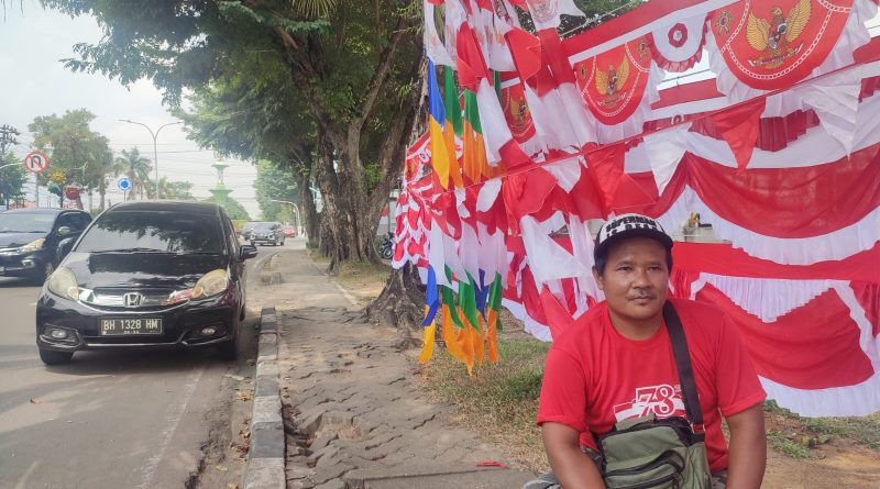 RuangJambi – Moment peringatan Hari Ulang Tahun Republik Indonesia setiap tahunnya, ternyata tak disia-siakan oleh masyakarat untuk menjajakan barang dagangan, seperti bendera merah putih dan umbul-umbul.