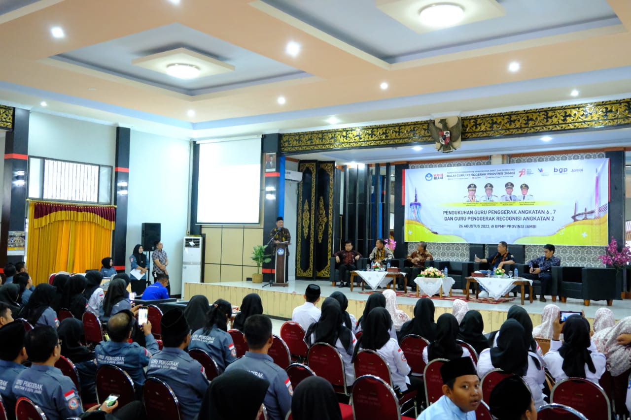 RuangJambi – Wakil Gubernur Jambi Drs. H. Abdullah Sani, M.Pd.I mengukuhkan 83 orang Guru Penggerak, yang terdiri dari 63 Orang Guru Penggerak Angkatan 6, 15 Orang Guru Penggerak Angkatan 7 dan 5 Orang Guru Penggerak Rekognisi. Hal tersebut dilaksanakan pada acara PENGUKUHAN GURU PENGGERAK ANGKATAN 6 DAN 7 SERTA GURU PENGGERAK REKOGNISI ANGKATAN 2, bertempat di Gedung Lembaga Penjamin Mutu Pendidikan (LPMP) Provinsi Jambi, Sabtu (26/08/2023).