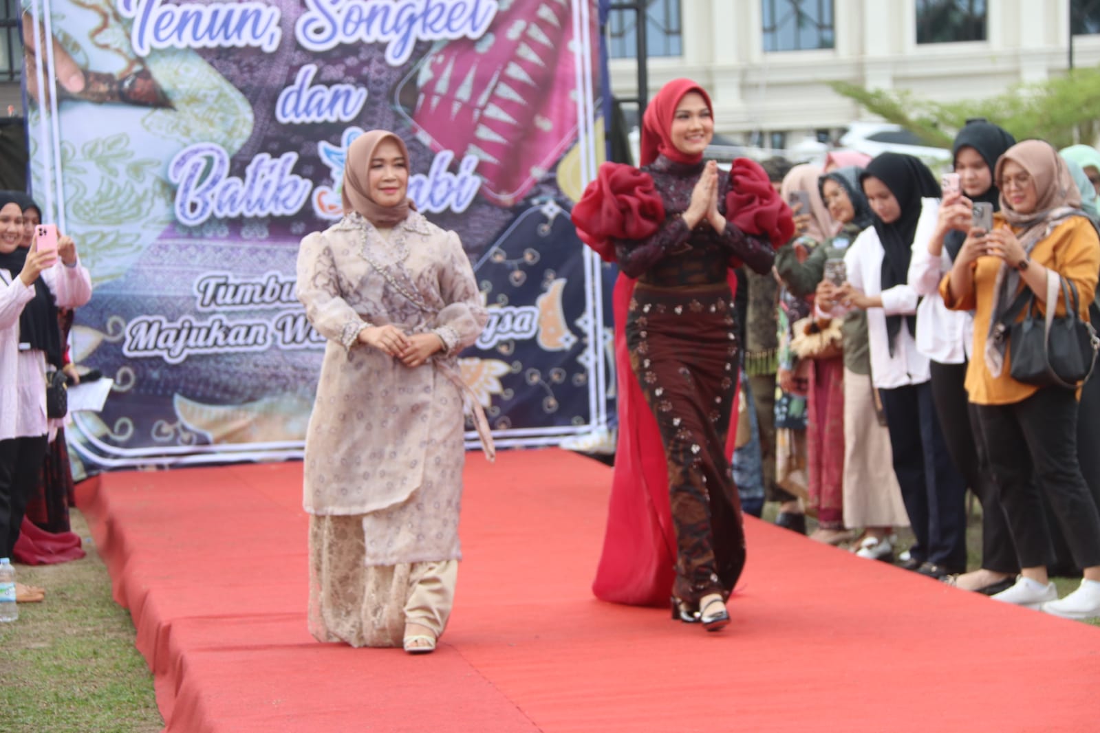 “Perkembangan tenun dari dulu hingga kini sanagat luar biasa di Indonesia begitupun di Provinsi Jambi dengan banyaknya bukti Sejarah yang tersimpan di Museum Negeri jambi. Oleh karena itu pada hari ini kita ingin menunjukkan bahwa potensi tenun yang ada di Provinsi Jambi ini sudah luar biasa dan sudah banyak diketahui oleh masyarakat banyak termasuk dikalangan para istri Menteri,” kata Hj. Hesti Haris.