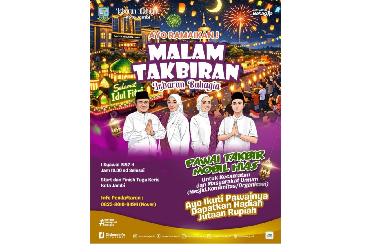 Pemerintah Kota Jambi juga mengundang masyarakat umum yang ingin berpartisipasi untuk segera mendaftarkan kendaraan hiasnya melalui panitia yang telah ditunjuk. Melalui kegiatan ini, Wali Kota berharap suasana malam kemenangan dapat dirasakan dengan penuh kebahagiaan, kemeriahan, namun tetap menjaga ketertiban umum.