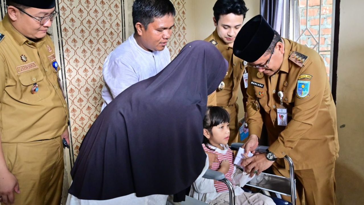 RuangJambi – Kepedulian Pemerintah Kota Jambi kembali ditunjukkan Wali Kota Jambi Maulana bersama Wakil Wali Kota Diza Hazra Aljosha dengan menyerahkan bantuan kursi roda kepada seorang anak berusia 6 tahun di Kecamatan Alam Barajo, Senin (30/03/2026).