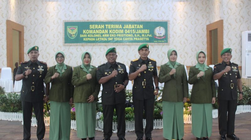 RuangJambi– Tongkat kepemimpinan Kodim 0415/Jambi resmi berganti. Jabatan Komandan Kodim 0415/Jambi secara resmi diserahterimakan dari Kolonel Arm Eko Pristiono, S.H.,M.I.Pol